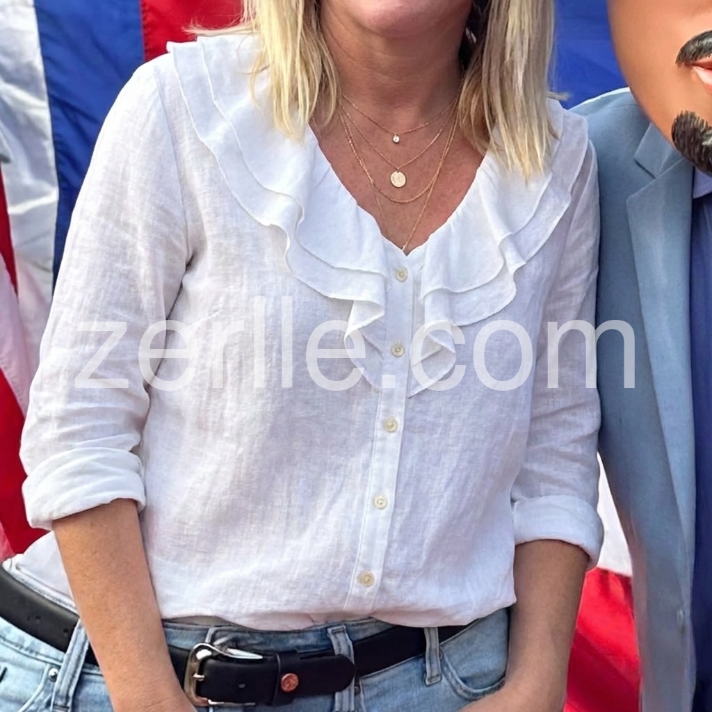 Absolutely love this top! The fabric feels like a high-quality linen blend, perfect for hot summer days. The ruffles add such a cute, feminine touch without being overwhelming. True to size.