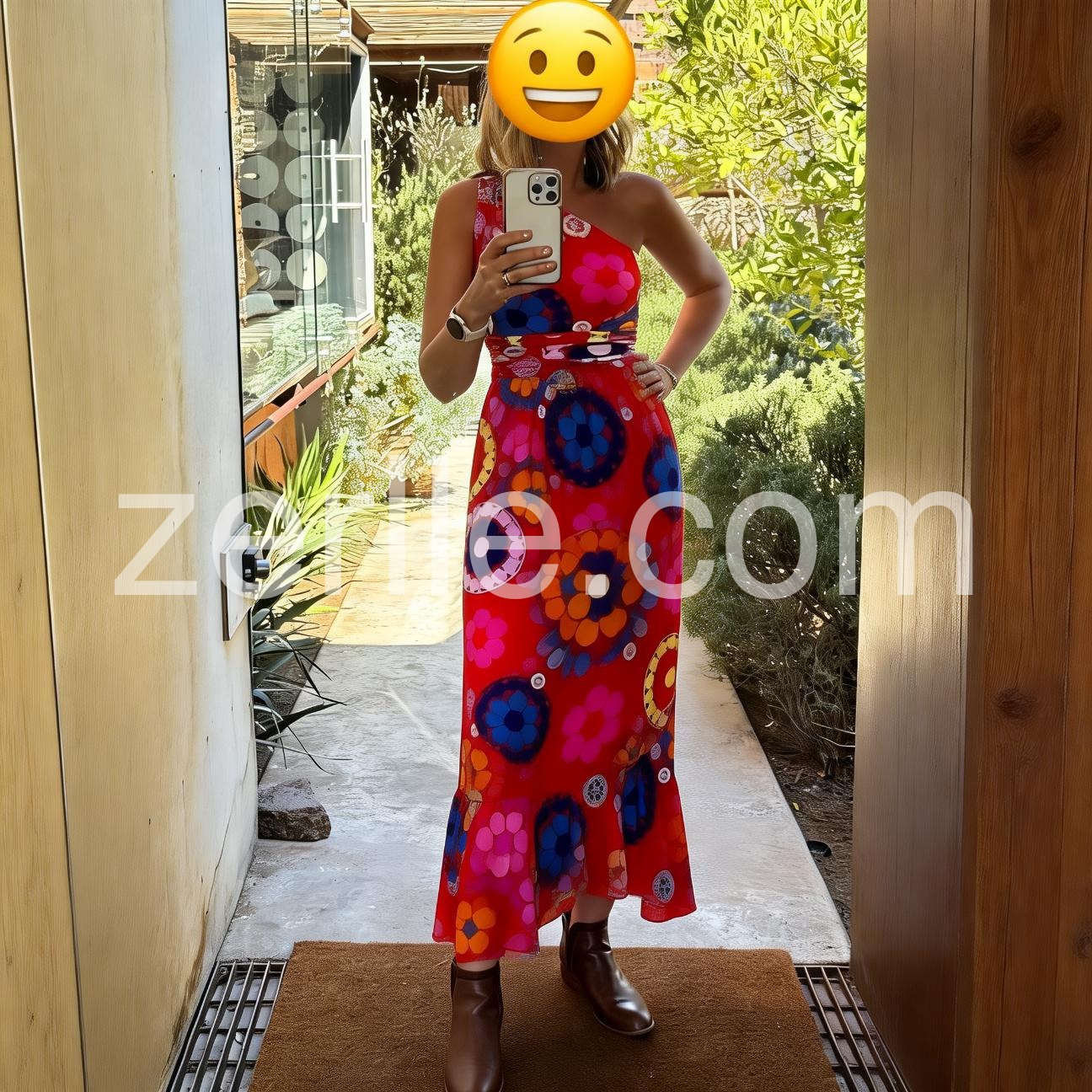 This one-shoulder maxi dress is stunning. The retro floral print is so fun and unique, I felt like a million bucks wearing it. It flows nicely when you walk. Definitely my new favorite summer dress.
