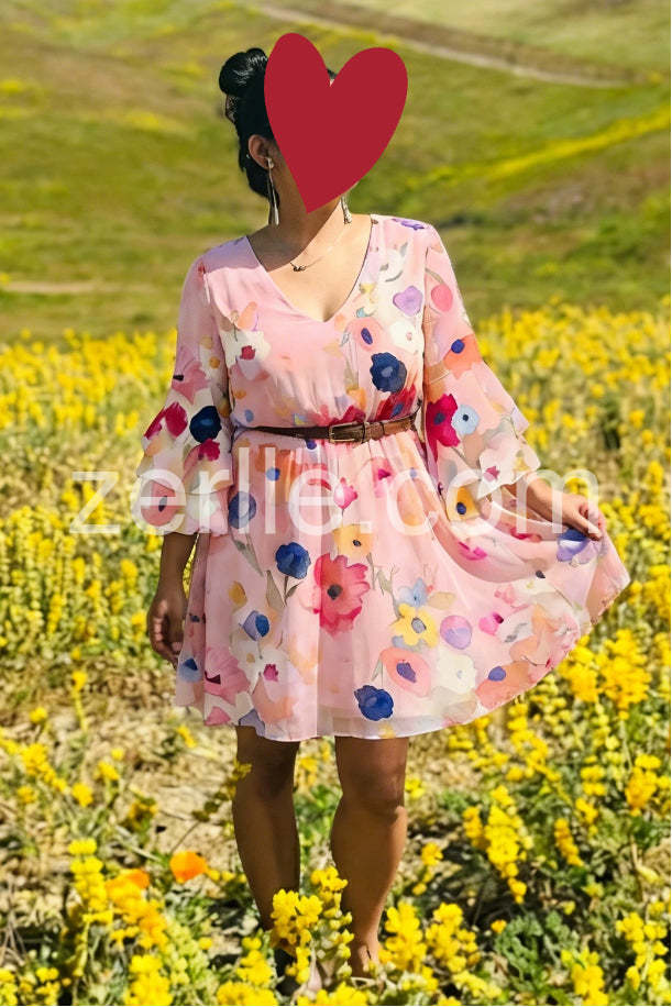 Absolutely love this dress! The watercolor floral pattern is so beautiful in person. The fit is incredibly flattering and forgiving without looking like a tent. Perfect for my upcoming spring vacation.