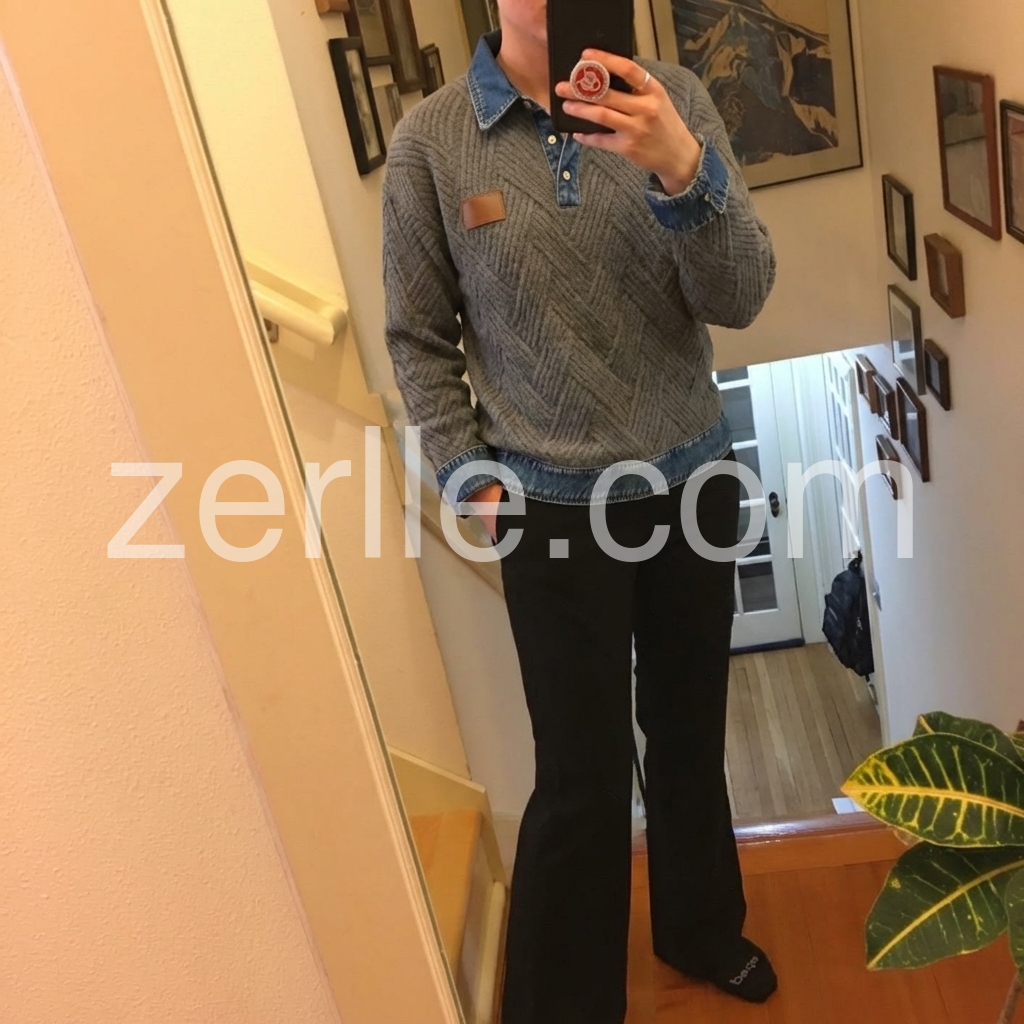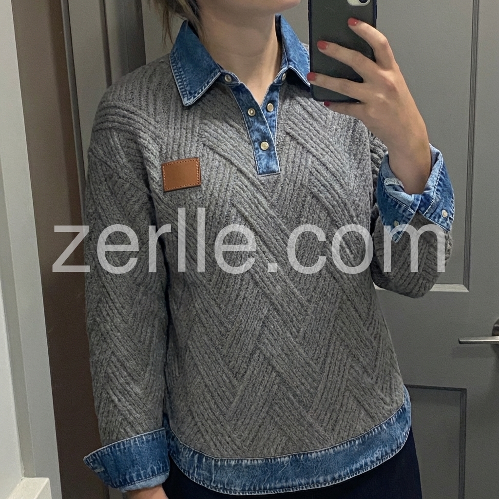 I’m really impressed with this sweater. The knit pattern is beautiful and the overall design feels thoughtfully made. I like that it pairs perfectly with jeans and also works with a skirt for a more put-together look. The collar area looks neat, and the sweater lays nicely on the body. Definitely a new favorite in my closet.