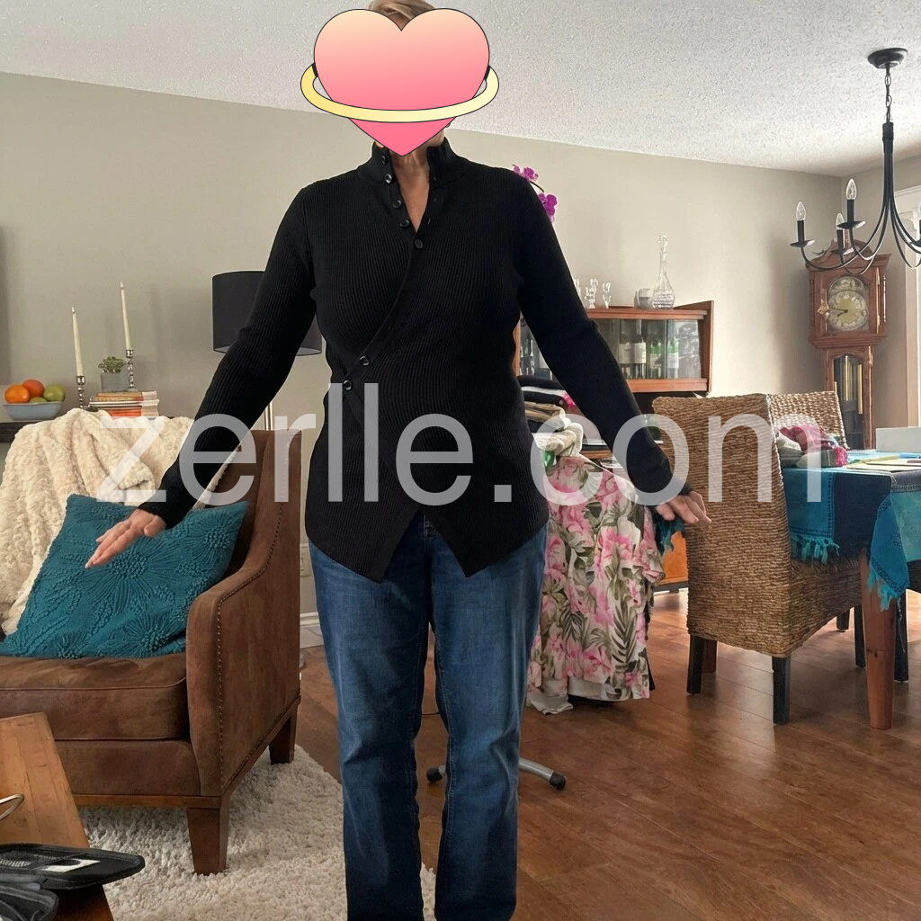 I’m really pleased with this piece. The black color is classic, and the ribbed texture looks high quality. The button-front detail is flattering, and the fit is comfortable through the shoulders and arms. It feels soft and easy to wear, and it layers well over other tops. Overall, it matches the photos nicely and I’ve already gotten a lot of compliments—great purchase.
