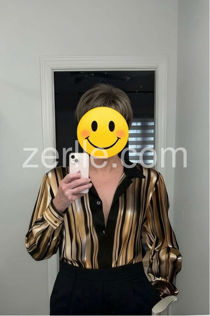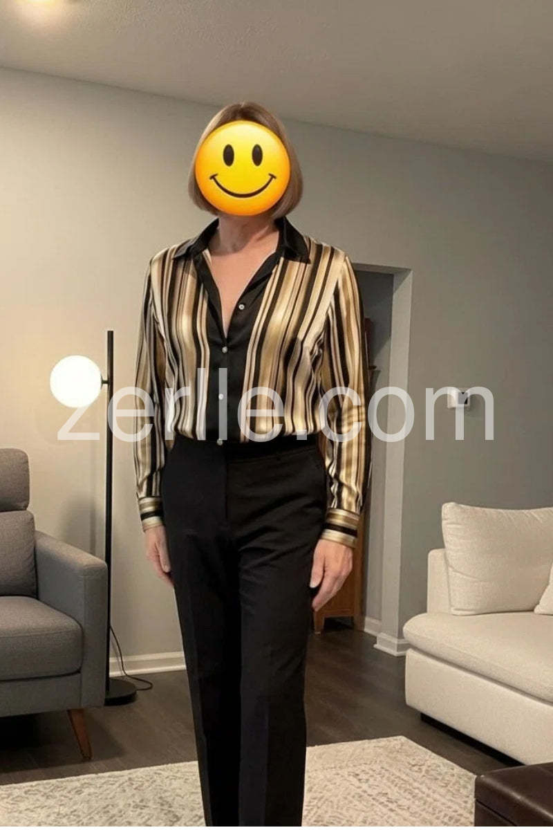 The shirt looks nice and easy to style for work or casual wear.I wear medium, for reference, I’m 5'6\", 36C, around 128–130 lbs. The only downside for me is the length — it’s longer than I prefer, but I wear it tucked in, and since the fabric isn’t too thick, it still looks nice that way. Overall, it’s a flattering, comfortable top that works well for meetings, dinners, or a dressier casual look.
