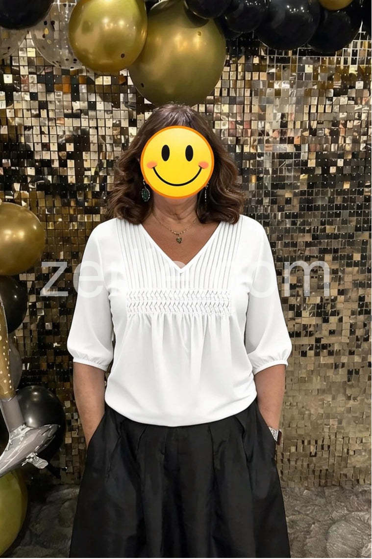 This top was a stunner! I wore for a trip to Italy . Comfy, light.Have received many compliments when wearing it!