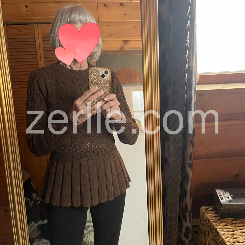 This is such a cute sweater. The cable knit design looks high quality and the flared hem makes it stand out in the best way. Itβs warm and cozy, but still easy to wear with leggings or jeans. The sizing is accurate and it matches the listing photos perfectly. Highly recommend!