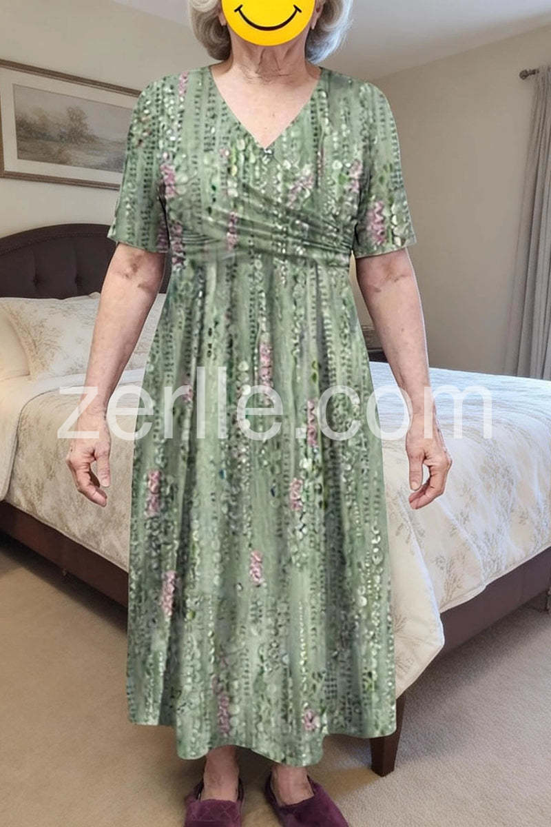This dress is beautifully made and incredibly forgiving. The wrap waist style with the gathering is great if you want something non-constricting. It flows beautifully when you walk. Oh, and did I mention the pockets? Love it!