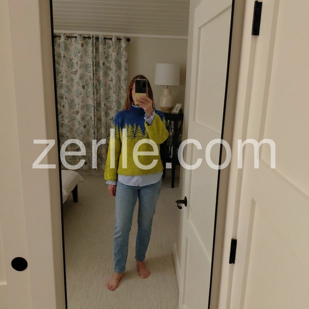 Great purchase! This sweater is incredibly soft and warm, perfect for cold weather. The design is so cute—those little trees are such a sweet detail, and the color contrast is bold but stylish. The bell sleeves are a nice touch, adding a feminine flair without being too frilly. It fits well, not too tight or too baggy, and the high neck is great for blocking out the wind. I’ll definitely be buying more colors if they become available!