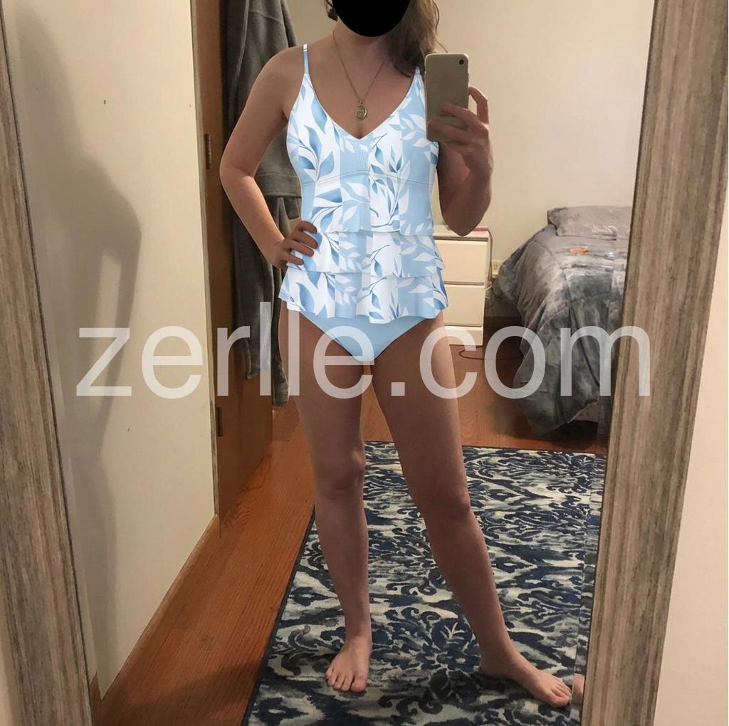 Iโm 5โ11โ, 160#, and normally wear a medium top. I ordered the L. It quickly became my favorite bathing suit, particularly because I have no booty, so the rouching design makes that a little less awkward. ๐
