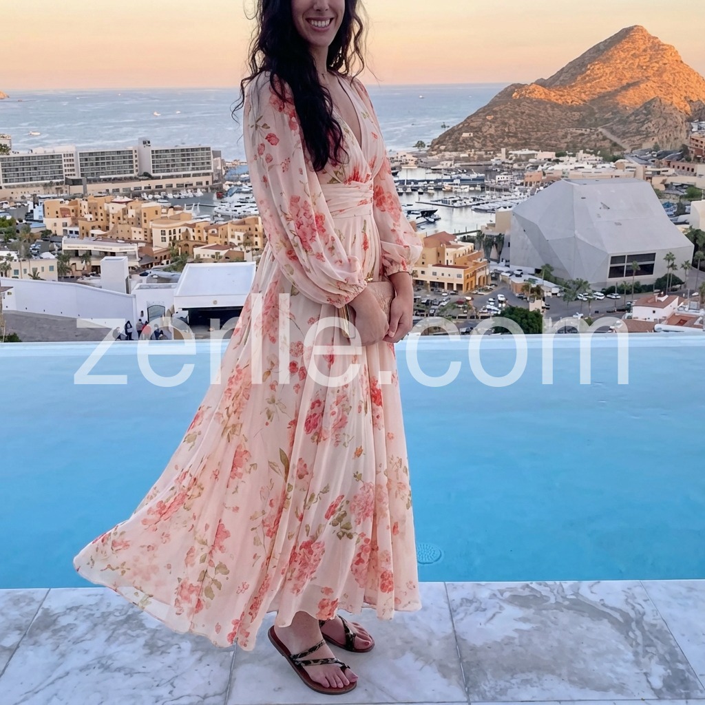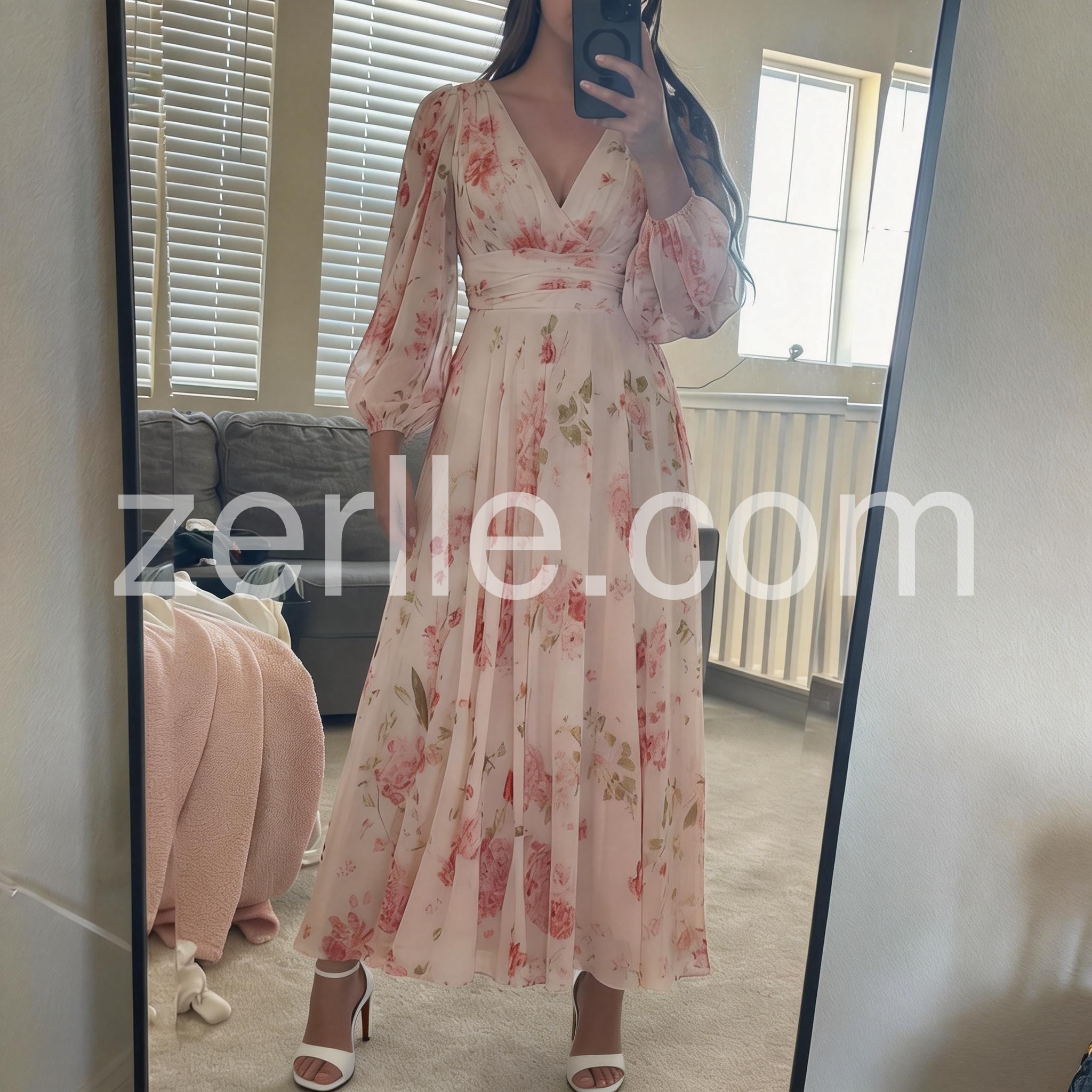 This dress is stunning. Quality material and extremely flattering. I bought a size M and I am usually somewhere between a size 8 and 10 with a 32dd on top. It’s even more vibrant in person. The material is lightweight but not see-through, perfect for summer. It felt comfortable enough to wear all day but nice enough to wear to a wedding or dinner date.