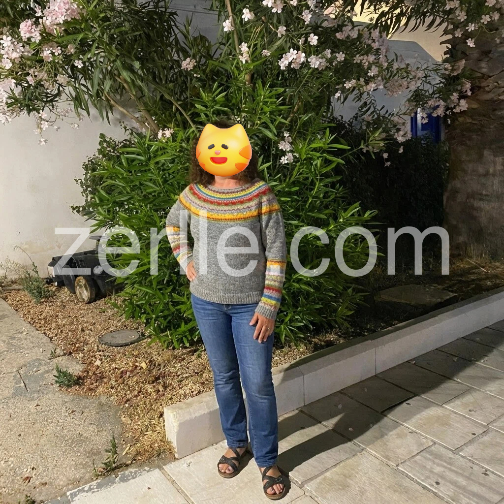 I’m obsessed with this sweater! The intricate multicolored patterns on the yoke and cuffs are so well-executed, giving it a handmade, artisanal feel. The gray body is neutral enough to be versatile, while the bright stripes make it stand out. It’s lightweight yet cozy, perfect for transitional weather. I’ve worn it almost every day since it arrived!