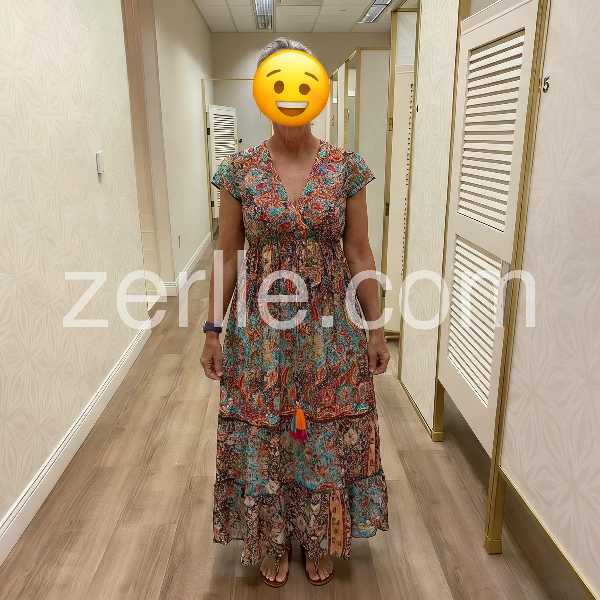 I love this maxi dress! It is perfect for summer. The material is very soft and smooth ! The V neck is just right, not too high and not too low. Highly recommend!