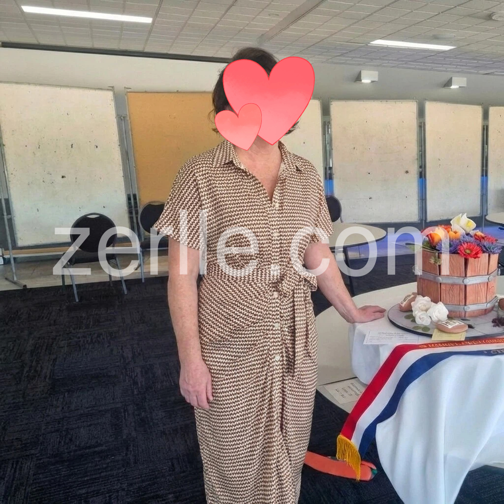I’m really happy with this dress. The pattern is cute and it looks exactly like the photos. The V-neck and short sleeves are flattering, and the waist tie lets me adjust the fit for a nice shape. The fabric feels comfortable and not stiff, and it drapes well so it’s easy to wear. Overall, it’s a great casual summer dress.