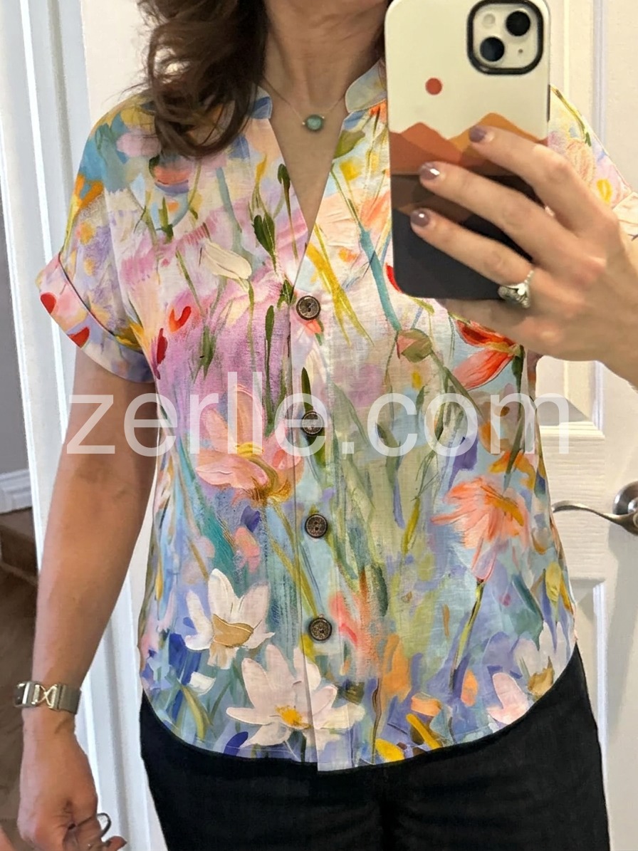 This blouse is absolutely gorgeous! The floral print looks like a watercolor painting, and the pastel colors are so vibrant and perfect for spring. I wore it to a garden party and received so many compliments.