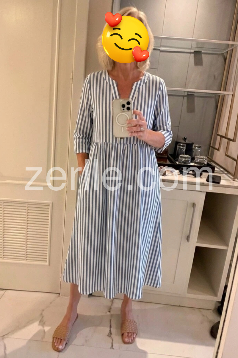 I absolutely love this dress! The blue and white stripes are so classic for summer, and it has pockets! The fit is incredibly flattering and comfortable.