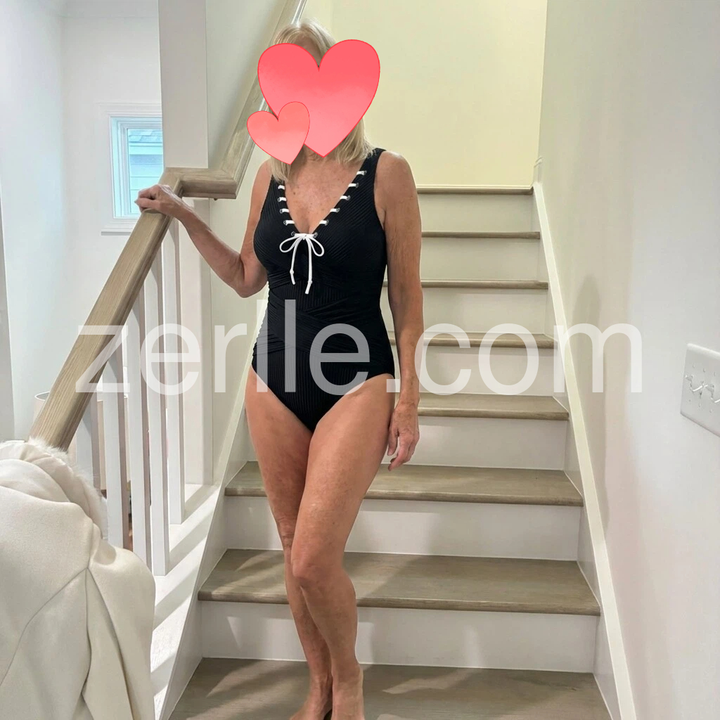 This swimsuit is such a nice find. I love the V-neck and the lace-up neckline—it gives it a more stylish, feminine look. The ribbed fabric gives it a premium look and the suit holds its shape well. It’s comfortable to wear and the fit feels just right.