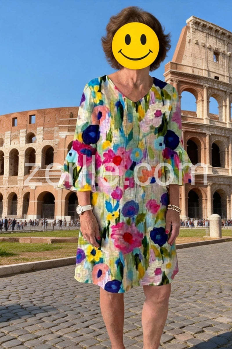 I saw Friend wearing this and I bought it that exact day. It is so light and floaty and I am obsessed! It is so classy you can wear it with sandals, or dress it up with wedges or heels This dress is comfortable flattering, and we will take you anywhere you want to go this summer.