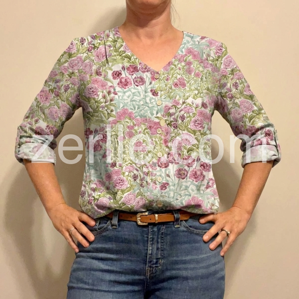 This blouse is incredibly versatile. I can wear it to work with slacks or dress it down for the weekend. The pink roses are gorgeous and the colors are vibrant.