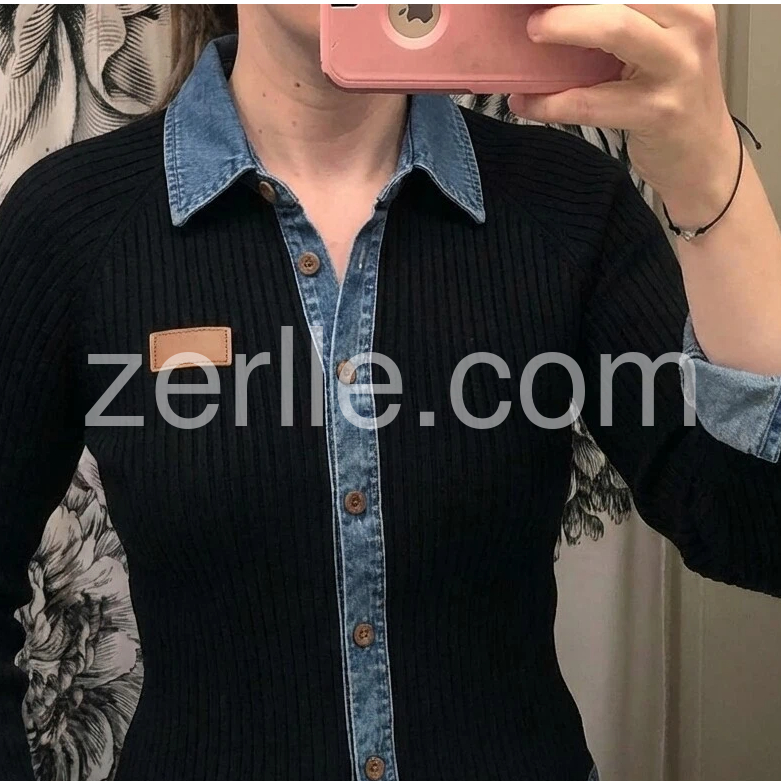 I’m really impressed by the quality of this top. The ribbed knit feels soft and cozy, and the denim front adds a cool casual vibe. The wooden buttons give it an extra classic touch, and the collar frames my face nicely. I wore it during a mild evening and stayed warm without feeling bulky. Definitely worth adding to my wardrobe.