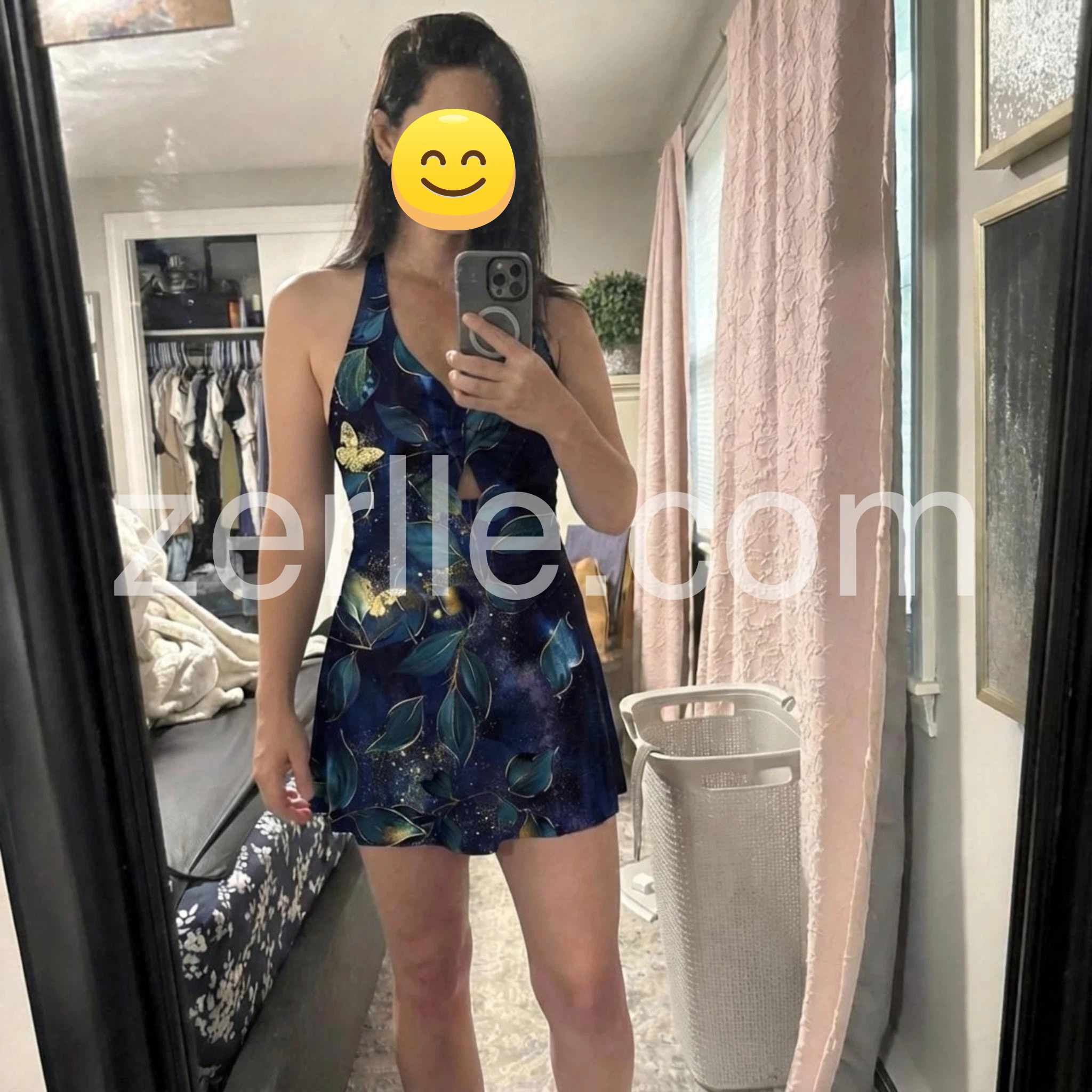 Really pretty swimsuit. Comfortable. Nice coverage. I Love it. It fits just as it should. The color was great, the tummy control was just enough without cutting you in two . Looks really good on and covers the rear end just enough.